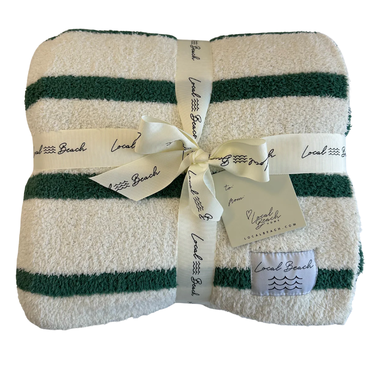 Green/Crème Holiday Stripe Cozy Luxe Blanket