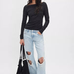 So-soft modal and a stunning low-back make this boat-neck long sleeve and totally timeless staple.