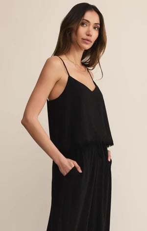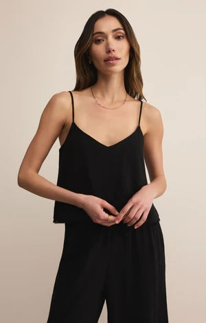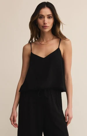 Effortlessly airy and cropped, this linen tank features adjustable spaghetti straps and a relaxed v-neck silhouette. Breezy yet refined, it's your instant upgrade for sunny days.