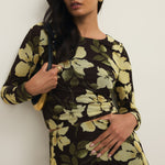 • Deep olive and cream floral print that transitions beautifully from day to night