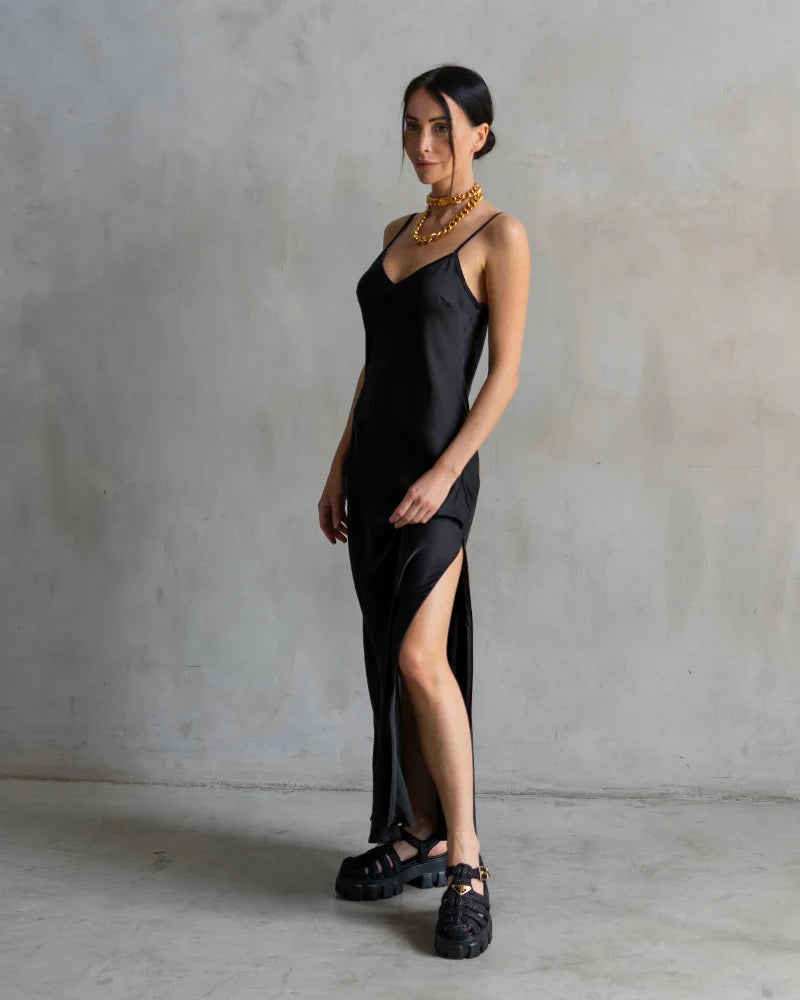 Basic Lennon Zipslip Dress Black