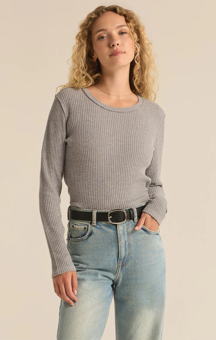 Your new favorite thermal is here! Lightweight and classic, it's easy to layer this crew neck with its raw edge detailing and so comfortable you'll wanna wear it from sunrise to sunset.