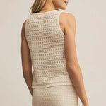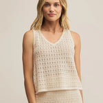 This midweight crochet tank is sheer perfection with its v-neckline and sleeveless silhouette. Easy to style solo or layered, it’s a summer staple with endless versatility.