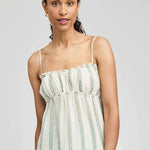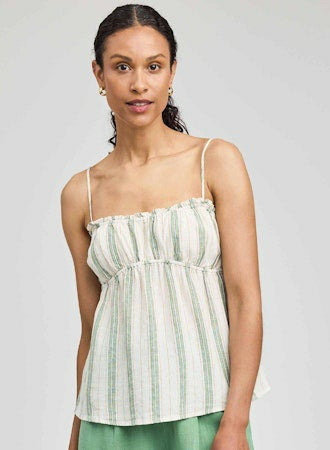 The Rosie Top brings easy, breezy charm to your warm-weather rotation. Designed with delicate spaghetti straps, a soft ruffled neckline, and subtle gathers for a relaxed fit, it’s lightweight and effortlessly feminine. Pair it with shorts or linen pants for a laid-back summer look. Details: Adjustable spaghetti straps Ruffled neckline detail Relaxed, flowy fit Lightweight woven fabric