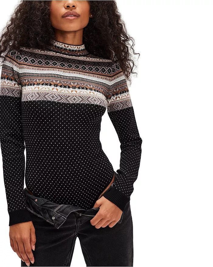 The Free People Winter Warmer Bodysuit in black and ivory is a stylish double-duty piece that effortlessly blends cozy comfort with chic contrast. Made from a soft, thermal-knit fabric, this form-fitting bodysuit features a classic scoop neckline and long sleeves to keep you snug in cooler temps. The striking two-tone design—black on one side and ivory on the other—creates a modern, asymmetrical visual interest that adds edge to any outfit. With a snap closure for an easy fit, it layers beautifully under high-waist jeans, skirts, or tailored trousers. Whether styled solo for a sleek monochrome look or paired with jackets and cardigans, this bodysuit offers both warmth and bold versatility—perfect for elevating your winter wardrobe with subtle attitude.