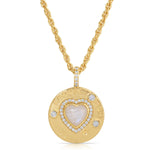 Statement pendant featuring a semi-precious gemstone heart center and cz accents. Pendant is debossed with "Choose Joy" on the front and engraved with Phillipians 4:6-7 on the back.